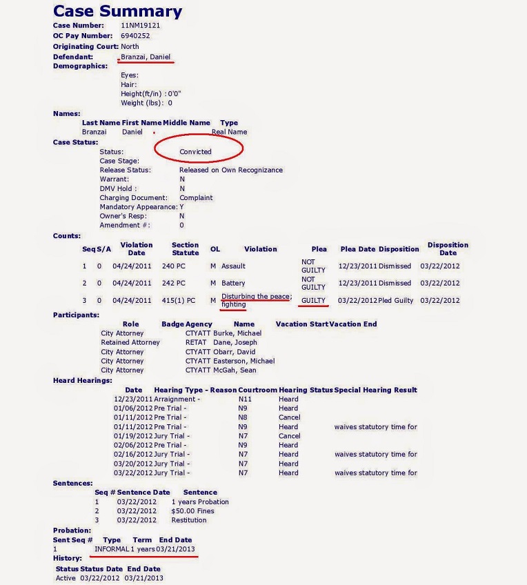 Sfatuita de familie, Lucretia Tiprigan s-a adresat medicilor care au eliberat un act de constatare si i-au recomandat sa se adreseze politiei, fiind vorba de un abuz fizic. Dupa ce politia a inregistrat plangerea femeii, a inaintat dosarul procurorului din Orange County, care a decis, data fiind gravitatea faptei, sa deschida un proces pe numele lui Daniel Branzai. Dornica de a nu lasa lucrurile sa degenereze si legata fiind de anumite reguli ale bisericii baptiste, care recomanda credinciosilor sa evite tribunalele seculare, familia Tiprigan s-a adresat liderilor bisericii baptiste cu rugamintea de a rezolva cazul.