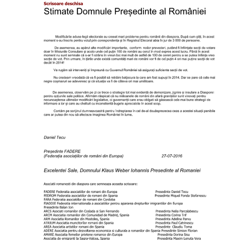 Asociatii romanesti din diaspora care semneaza aceasta scrisoare: