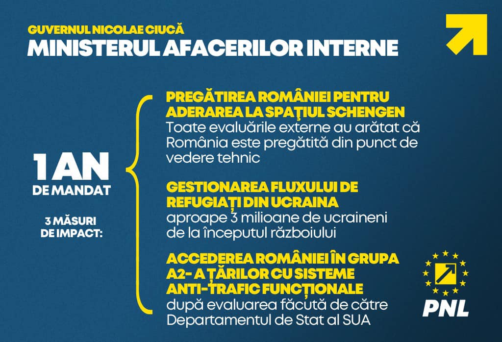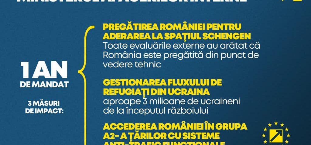 Astfel, concluzia clară a acestui an de mandat este că Ministerul Afacerilor Interne și-a îndeplinit obiectivele asumate, derulând misiuni complexe, într-un mediu de securitate delicat la nivel internațional, asigurând protecția cetățenilor români și colaborarea la un nivel ridicat de profesionalism cu partenerii externi.