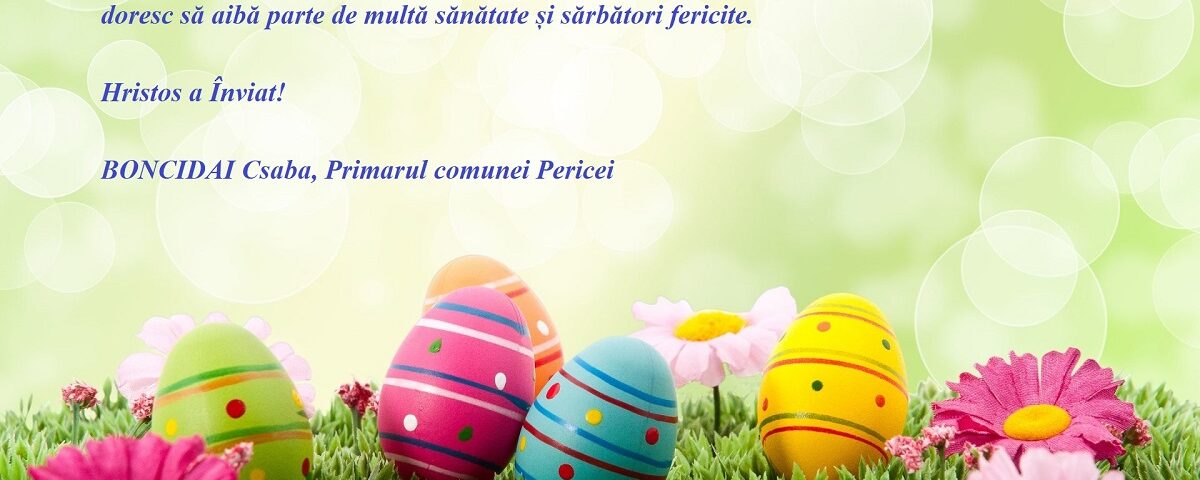 Fie ca sfânta sărbătoare a Învierii Domnului să vă aducă cele 4 taine divine: încredere, lumină, iubire, speranţă. Tuturor locuitorilor comunei Pericei, angajaților primăriei și colaboratorilor noștri care sărbătoresc Sfintele Paști le doresc să aibă parte de multă sănătate și sărbători fericite.