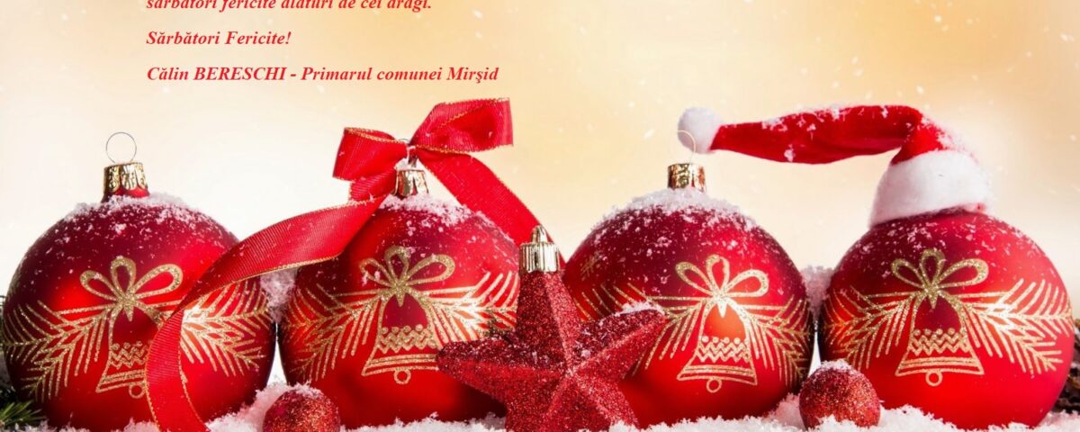 Fie ca spiritul blând al Sfintelor Sărbători să ningă asupra voastră doar bucurie, prosperitate, veselie şi sănătate! Tuturor locuitorilor comunei Mirşid, angajaţilor primăriei şi colaboratorilor noştri le doresc sărbători fericite alături de cei dragi.