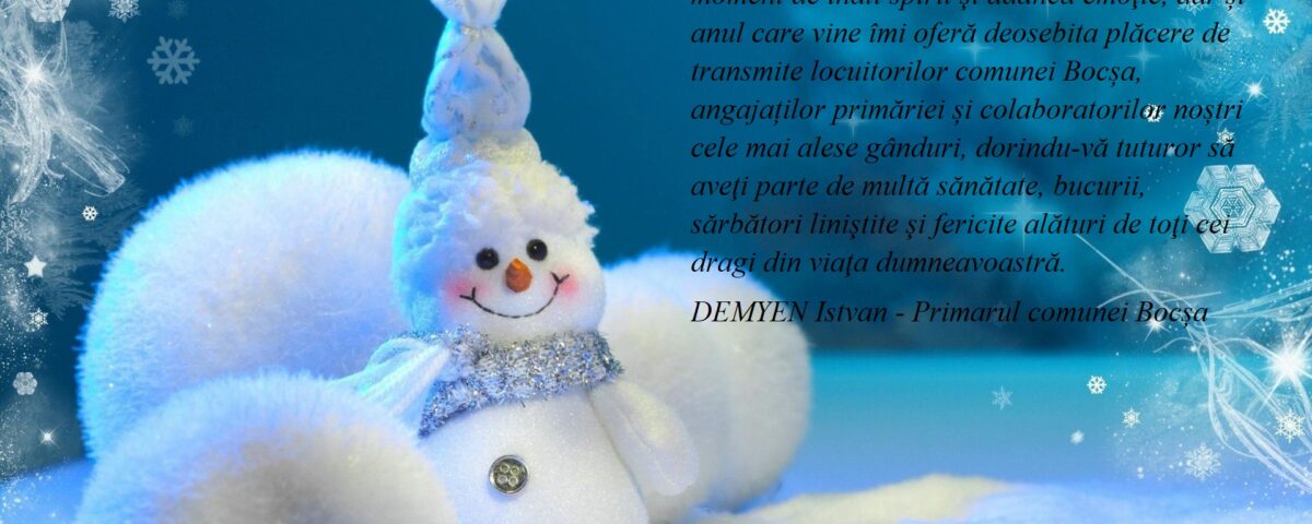 Marea sărbătoare a Naşterii Domnului, moment de înalt spirit şi adâncă emoţie, dar și anul care vine îmi oferă deosebita plăcere de transmite locuitorilor comunei Bocșa, angajaților primăriei și colaboratorilor noștri cele mai alese gânduri, dorindu-vă tuturor să aveţi parte de multă sănătate, bucurii, sărbători liniştite şi fericite alături de toţi cei dragi din viaţa dumneavoastră.