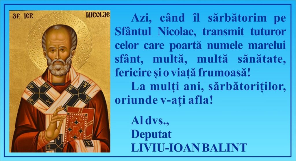 Deputatul Liviu-Ioan Balint: -La multi ani de Sfântul Nicolae