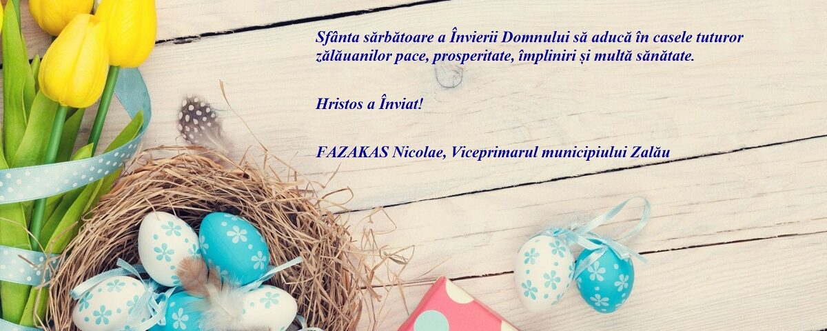 Sfânta sărbătoare a Învierii Domnului să aducă în casele tuturor zălăuanilor pace, prosperitate, împliniri și multă sănătate. Hristos a Înviat! FAZAKAS Nicolae, Viceprimarul municipiului Zalău