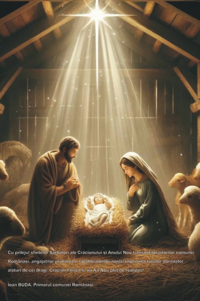 Cu prilejul sfintelor Sărbători ale Crăciunului şi Anului Nou transmit locuitorilor comunei Românași, angajaților primărei și colaboratorilor noştri împlinirea tuturor dorinţelor alături de cei dragi.