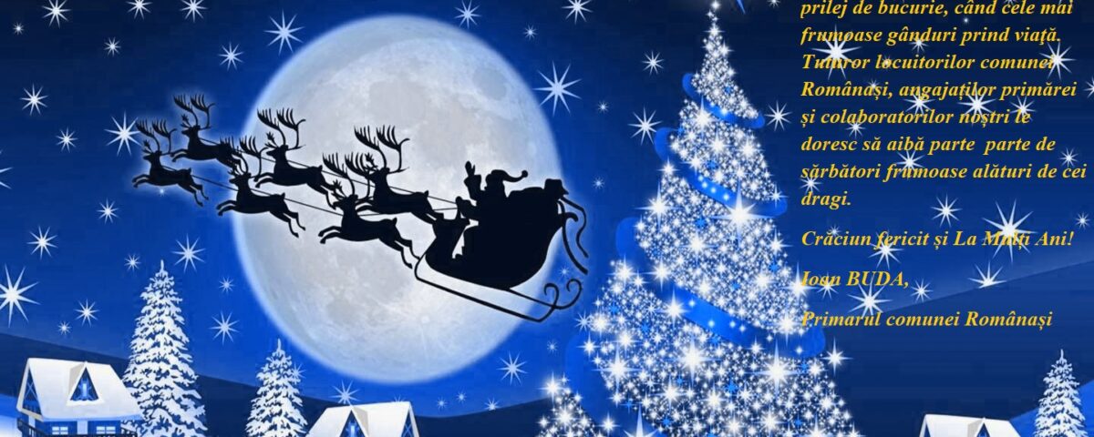 Sărbătorile de iarnă sunt un prilej de bucurie, când cele mai frumoase gânduri prind viaţă. Tuturor locuitorilor comunei Românași, angajaților primărei și colaboratorilor noștri le doresc să aibă parte parte de sărbători frumoase alături de cei dragi.