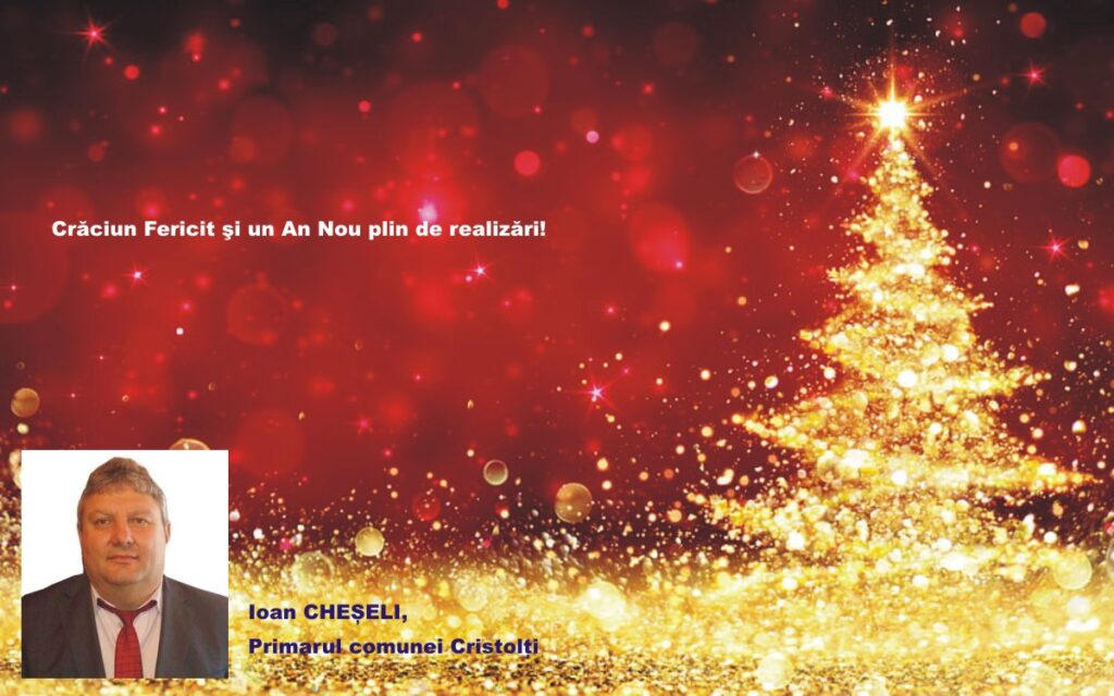 Cu prilejul sfintelor Sărbători ale Crăciunului şi Anului Nou transmit locuitorilor comunei Cristolți, angajaților primărei și colaboratorilor noştri împlinirea tuturor dorinţelor, alături de cei dragi.