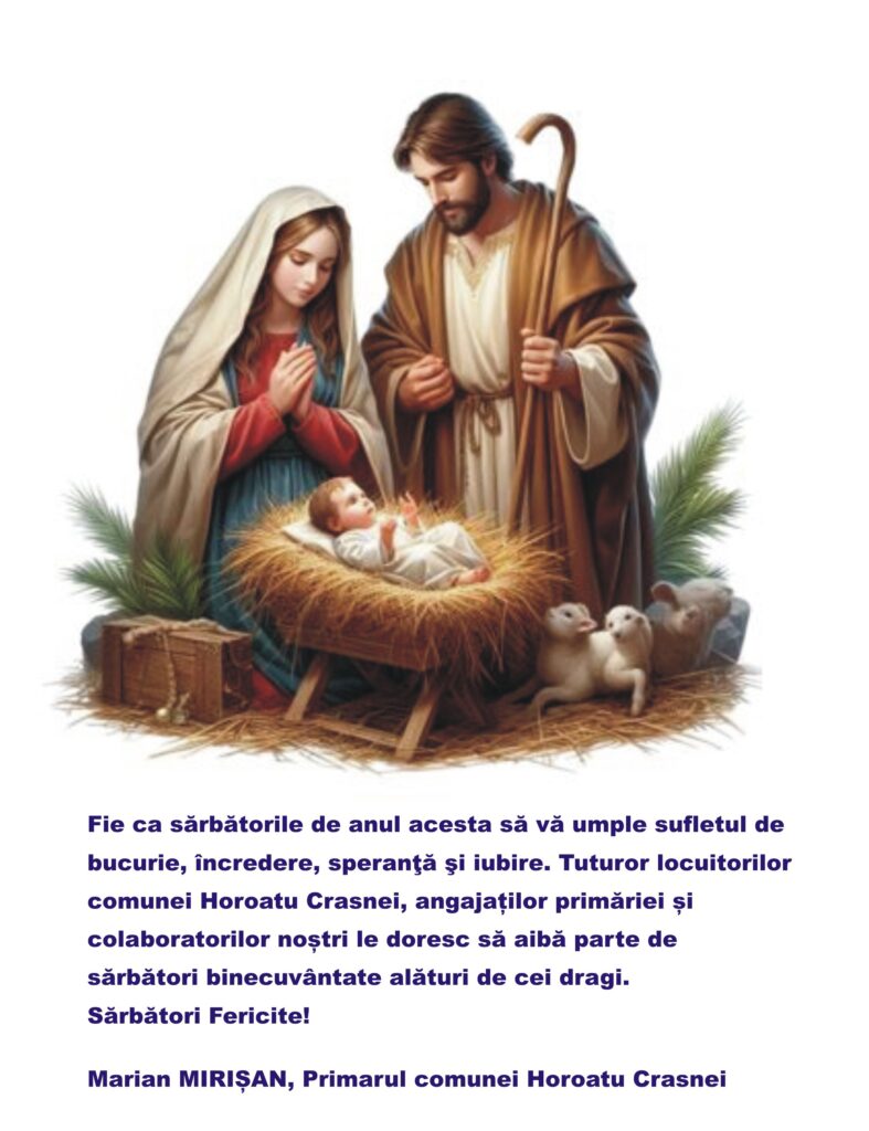 Fie ca sărbătorile de anul acesta să vă umple sufletul de bucurie, încredere, speranţă şi iubire. Tuturor locuitorilor comunei Horoatu Crasnei, angajaților primăriei și colaboratorilor noștri le doresc să aibă parte de sărbători binecuvântate alături de cei dragi.