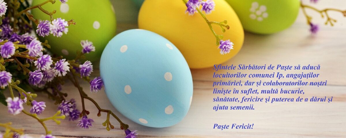 Sfintele Sărbători de Paşte să aducă locuitorilor comunei Ip, angajaților primăriei, dar și colaboratorilor noștri linişte în suflet, multă bucurie, sănătate, fericire şi puterea de a dărui şi ajuta semenii.