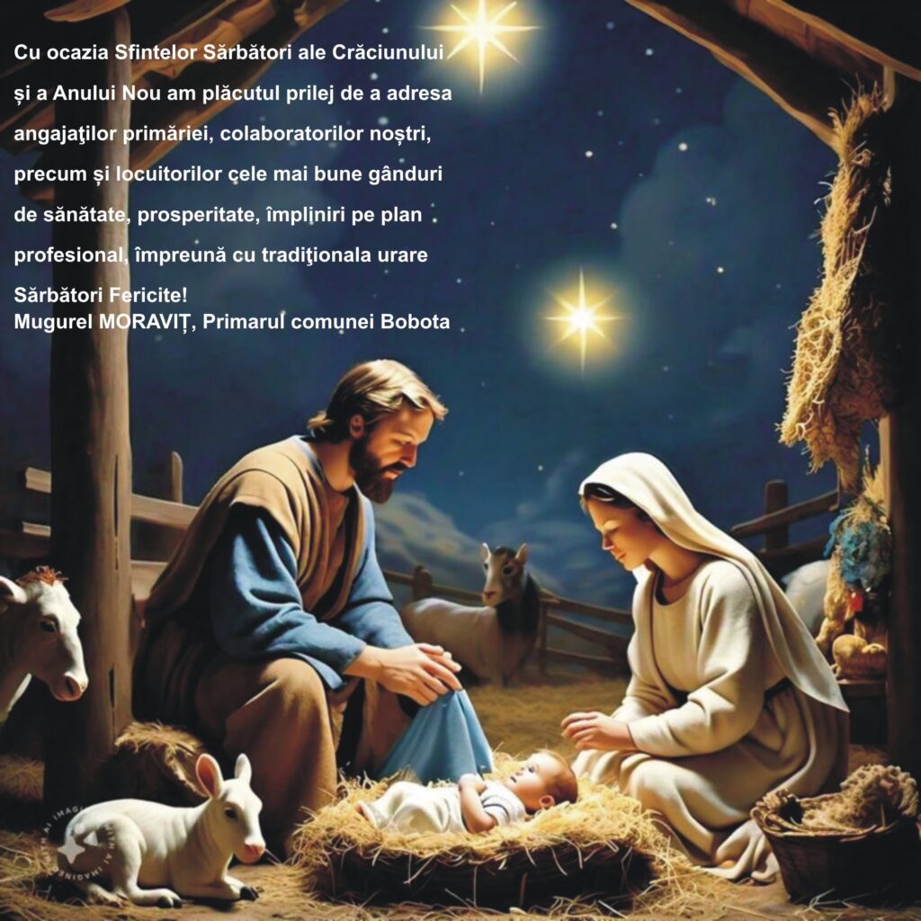 Cu ocazia Sfintelor Sărbători ale Crăciunului și a Anului Nou am plăcutul prilej de a adresa angajaţilor primăriei, colaboratorilor noștri, precum și locuitorilor cele mai bune gânduri de sănătate, prosperitate, împliniri pe plan profesional, împreună cu tradiţionala urare Sărbători Fericite!