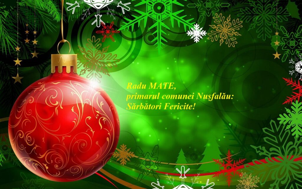 Sărbătorile de Crăciun şi Anul Nou să vă aducă sănătate, putere de muncă şi multe satisfacţii alături de cei dragi. Transmit pe această cale cele mai alese gânduri de bine și prosperitate tuturor locuitorilor comunei noastre, angajaților Primăriei Nușfalău, dar și colaboratorilor noștri.