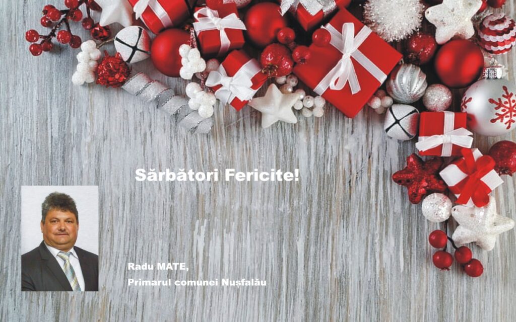 Sărbătorile de Crăciun şi Anul Nou să vă aducă sănătate, putere de muncă şi multe satisfacţii alături de cei dragi. Transmit pe această cale cele mai alese gânduri de bine și prosperitate tuturor locuitorilor comunei noastre, angajaților Primăriei Nușfalău, dar și colaboratorilor noștri.