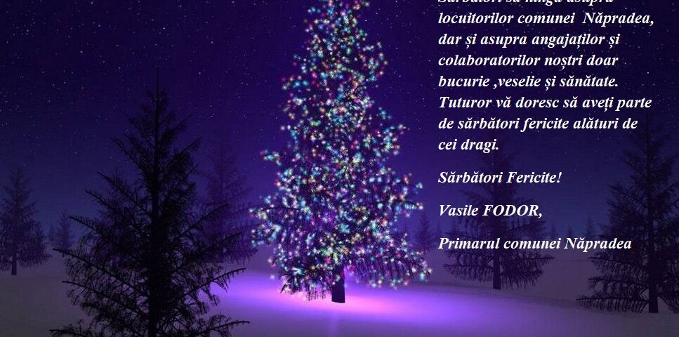 Fie ca spiritul blând al Sfintelor Sărbători să ningă asupra locuitorilor comunei Năpradea, dar și asupra angajaților și colaboratorilor noștri doar bucurie ,veselie și sănătate. Tuturor vă doresc să aveți parte de sărbători fericite alături de cei dragi.
