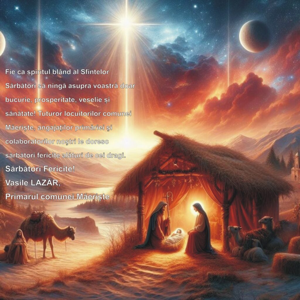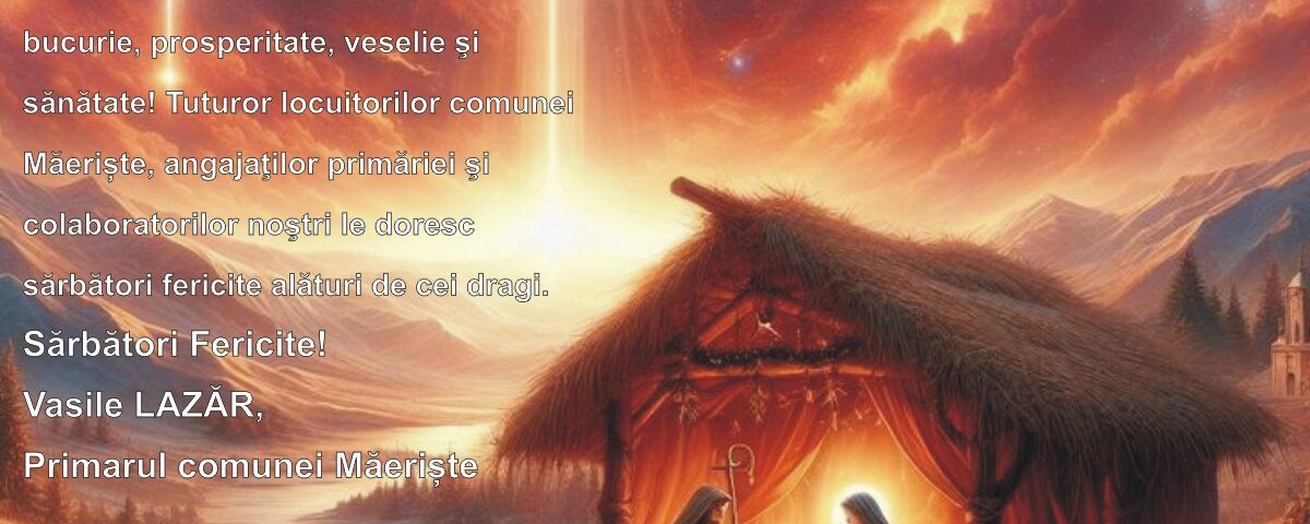 Fie ca spiritul blând al Sfintelor Sărbători să ningă asupra voastră doar bucurie, prosperitate, veselie şi sănătate! Tuturor locuitorilor comunei Măeriște, angajaţilor primăriei şi colaboratorilor noştri le doresc sărbători fericite alături de cei dragi.