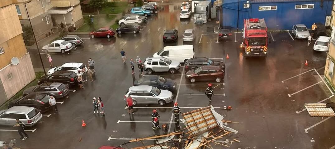 Ploile torențiale și vântul puternic au făcut prăpăd în oraș. Un acoperiș de pe strada 1 Mai a fost smuls de forța vântului, iar mai multe zone sunt afectate!