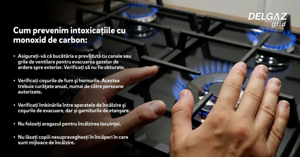 Pe fondul diferitelor defecțiuni la aparatele de încălzire sau la cele de evacuare a gazelor arse, monoxidul de carbon – un gaz asfixiant, foarte toxic – se acumulează în încăpere și duce la intoxicarea persoanelor. Fiind fără culoare și miros, este greu de depistat, dar există câteva simptome care ne pot da indicii cu privire la o posibilă intoxicație cu monoxid de carbon, respectiv senzația de greață, cea de amețeală și durerile de cap. De aceea, în cazul în care avem suspiciuni cu privire la o posibilă intoxicație cu monoxid de carbon, trebuie să scoatem victimele la aer curat, să aerisim încăperile şi să contactăm serviciul medical de urgenţă. De multe ori, însă, intoxicația intervine în timpul nopții când durata expunerii este mai mare și din acest motiv șansele de supraviețuire pentru cei care au inhalat monoxid de carbon sunt minime.