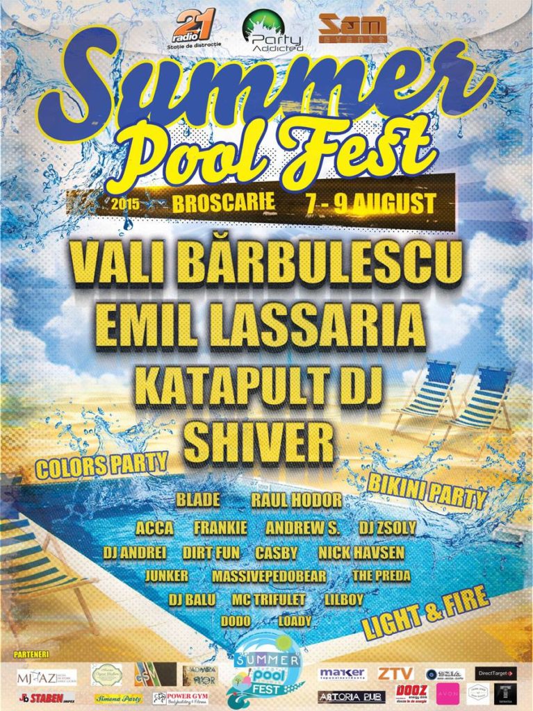 In perioada 7-9 August 2015 echipa summer pool fest organizeaza a 3-a ediție a festivalului Summer Pool Fest in incinta complexului termal Broscărie lângă Simleul Silvaniei in judetul Sălaj unde estimăm un public de 5000 de persoane pe parcursul a celor 3 zile.