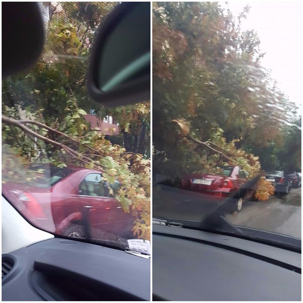 pe masina lui. Asta s-a intamplat miercuri in jurul orei 17:00 in municipiul Zalau, iar un telespectator a surprins cu telefonul mobil creanga pe autoturism.