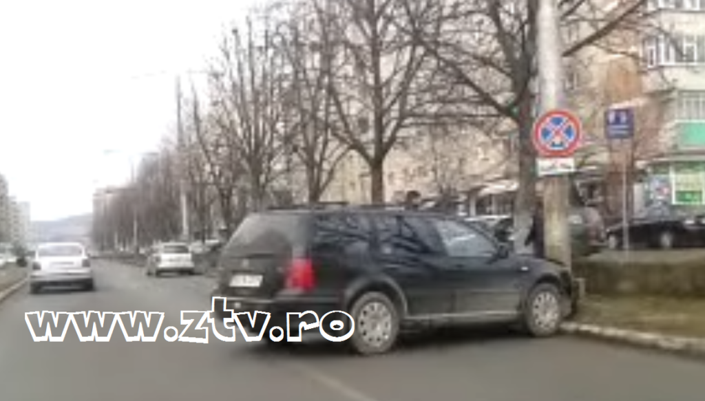 s-a infipt cu masina intr-un stalp din centrul municipiului Zalau. Un telespectator ZTV a surprins masina pe bulevardul Mihai Viteazul, fata in fata cu Parcul Tineretului, iar soferul a privit suparat masina afectata de contactul cu stalpul de iluminat public.