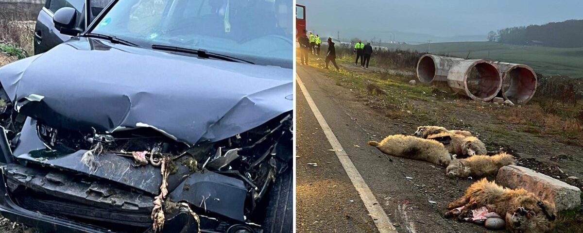 La data de 3 noiembrie 2022, la ora 06:25, polițiștii Biroului Rutier Zalău au fost sesizați să intervină la un accident de circulație produs pe Drumul Național 1H, la intrarea în localitatea Hereclean. Din primele verificări efectuate la fața locului a reieșit că, un bărbat, în vârstă de 60 de ani, din comuna Bănișor, în timp ce conducea un autoturism, pe sectorul de drum sus-menționat, la kilometrul 68, a intrat în plin într-o turmă de oi, care traversau drumul public, fiind însoțite de cioban. În urma incidentului, 21 de oi au decedat, iar pasagerul de pe bancheta spate a autoturismului, un bărbat, de 60 de ani, din comuna Vârșolț, a suferit lezziuni și a fost transportat la o unitate medicală, pentru a i se acorda îngrijiri de specialitate. Proprietarul animalelor este un bărbat, de 48 de ani, din orașul Șimleu Silvaniei, care s-a deplasat la fața locului pentru a elibera carosabilul și a transporta animalele decedate. Conducătorul auto a fost testat cu aparatul alcoolscop, rezultatul fiind negativ. Polițiștii au întocmit dosar penal și continuă cercetările pentru a stabili, cu exactitate, cauza și împrejurările producerii evenimentului rutier. – Ioana Rus purtător de cuvânt Poliția Sălaj.