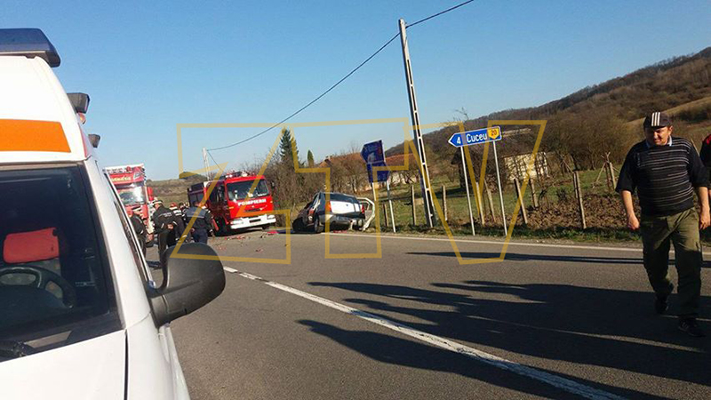 DN1H. Din primele informatii primite de la persoane anonime de la fata locului se pare ca soferul unui autoturism marca Dacia a patruns pe drumul national dinspre Cuceu, judetul Salaj, nu s-a asigurat si a fost lovit de catre un autotren care circula regulamentar. In urma coliziunii soferul autoturismului si pasagera din partea dreapta au suferit leziuni. Soferul a fost transportat la spital pentru acordarea de ingrijiri medicale.