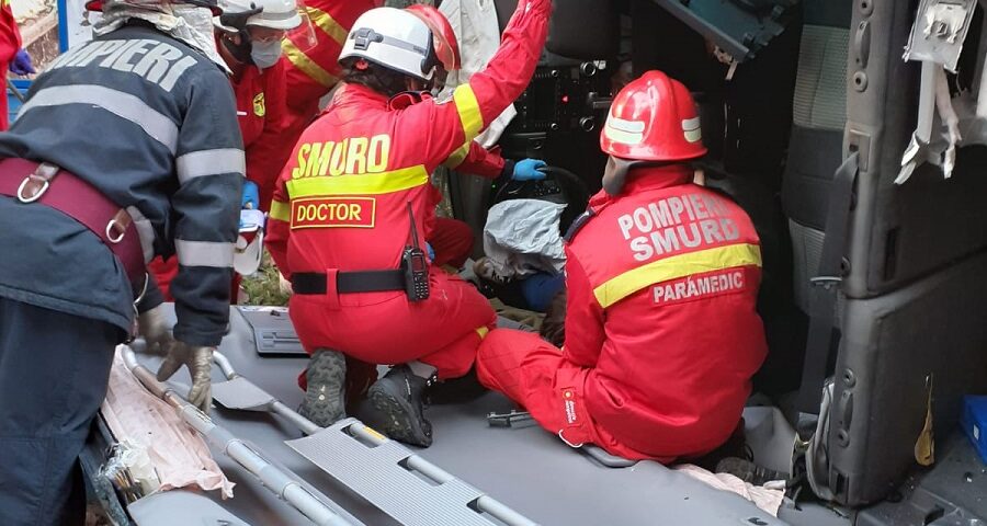 In urma cu putin timp pompierii simleuani au fost solicitați sa intervină la un eveniment rutier petrecut pe strada Tineretului (langa Unicarm) din localitate. In accident a fost implicat 1 autoturism care s-a rasturnat si in care se aflau 5 persoane: 1 adult (constient, care a ramas incarcerat) si 4 minori (constienti) care au fost preluati de echipajele medicale.Se actioneaza pentru descarcerarea victimei. Victima a fost descarcerata si predata echipajului de terapie intensiva mobila (TIM). – cpt. Lucian Jacodi purtător de cuvânt ISU Sălaj