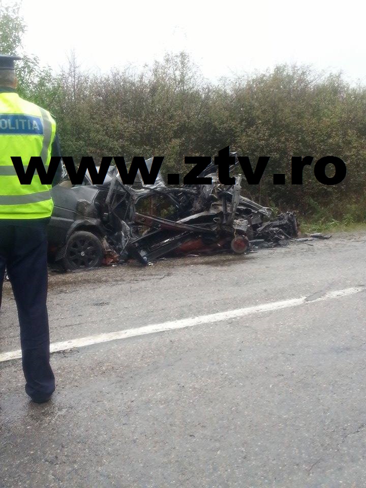 Din declaratiile martorilor, se pare ca soferul unui autoturism cu numere de Satu Mare, a pierdut controlul volanului si a intrat intr-o Raba, inmatriculata in Salaj. In urma impactului cei doi pasageri ai autoturismului, un barbat si o femeie au decedat pe loc. Pompierii au fost solicitati la fata locului cu descarcerarea, pentru a scoate dintre fiarele contorsionate ale masinii, cele doua victime. Conform martorului ocular, acestia au scos femeia in bucati din autoturism. Politistii satmareni fac cercetari pentru a stabili cauzele in care s-a petrecut evenimentul rutier. Vom reveni.