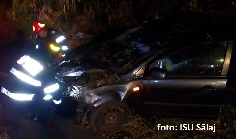 un autoturism iesit in afara partii carosabile. Conducatorul auto, un barbat de aproximativ 55-60 de ani, a fost preluat de catre echipajul SMURD si transportat la UPU Zalau, pentru mai multe investigatii medicale.