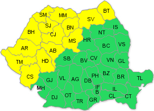 Instabilitatea atmosfericã va fi deosebit de accentuatã în Banat, Crişana, Maramureş, vestul şi nordul Transilvaniei, precum şi în nordul Moldovei. Vor fi frecvente descãrcãri electrice, intensificãri de vânt cu aspect de vijelie, va cãdea grindinã, iar aversele vor fi izolat importante cantitativ (peste 20…30 l/mp).