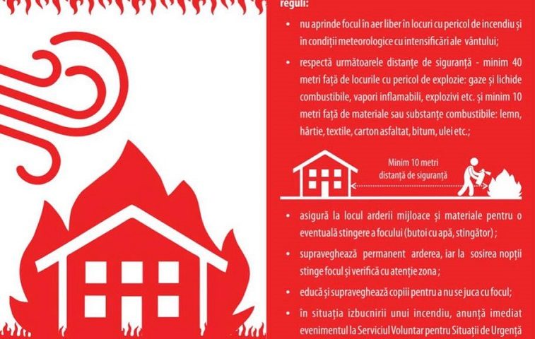 Inspectoratul pentru Situaţii de Urgenţă „Porolissum” recomandă o prudenţă mai mare la igienizarea terenurilor prin ardere, mai ales dacă terenurile se află în apropierea anexelor gospodăreşti, a locuinţelor, fond forestier etc.