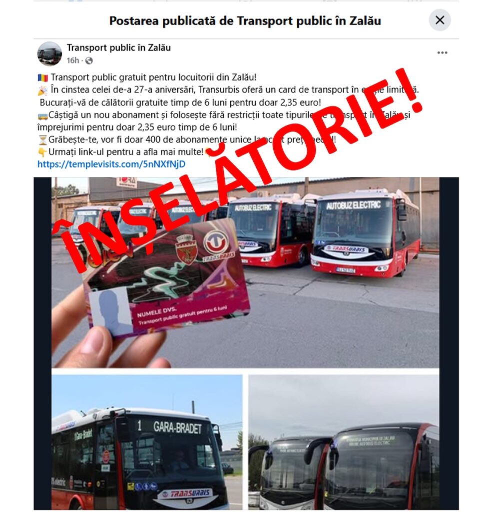 O tentativă de fraudă care folosește logo-ul și autobuzele Transurbis SA a apărut în mediul online. Aceasta promite abonament pentru o perioadă de 6 luni, în valoare de 2,35 euro.