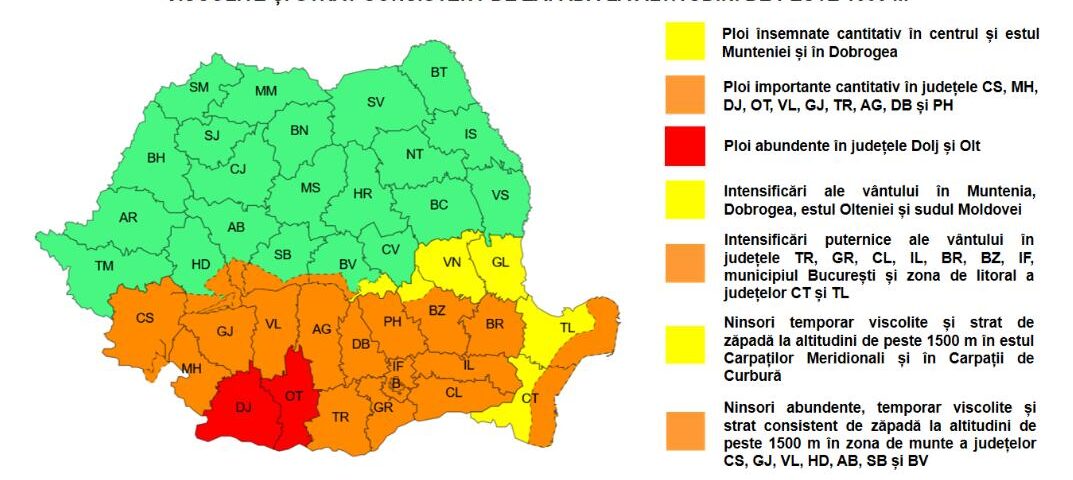 În contextul avertizărilor emise de Administrația Națională de Meteorologie, Departamentul pentru Situații de Urgență, împreună cu Inspectoratul General pentru Situații de Urgență (IGSU), au dispus o serie de măsuri pentru gestionarea situațiilor care pot apărea ca urmare a manifestării fenomenelor meteorologice și hidrologice prognozate în perioada următoare.