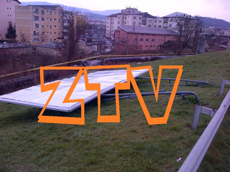 panou publicitar a fost culcat la pamant, cel putin asa ne-a declarat un telespectator ZTV, care ne-a trimis imaginile la redactie. Mare noroc a fost ca in zona nu circula persoane deoarece acel panou cazut putea sa provoace rani grave sau pierderea de vieti omenesti.