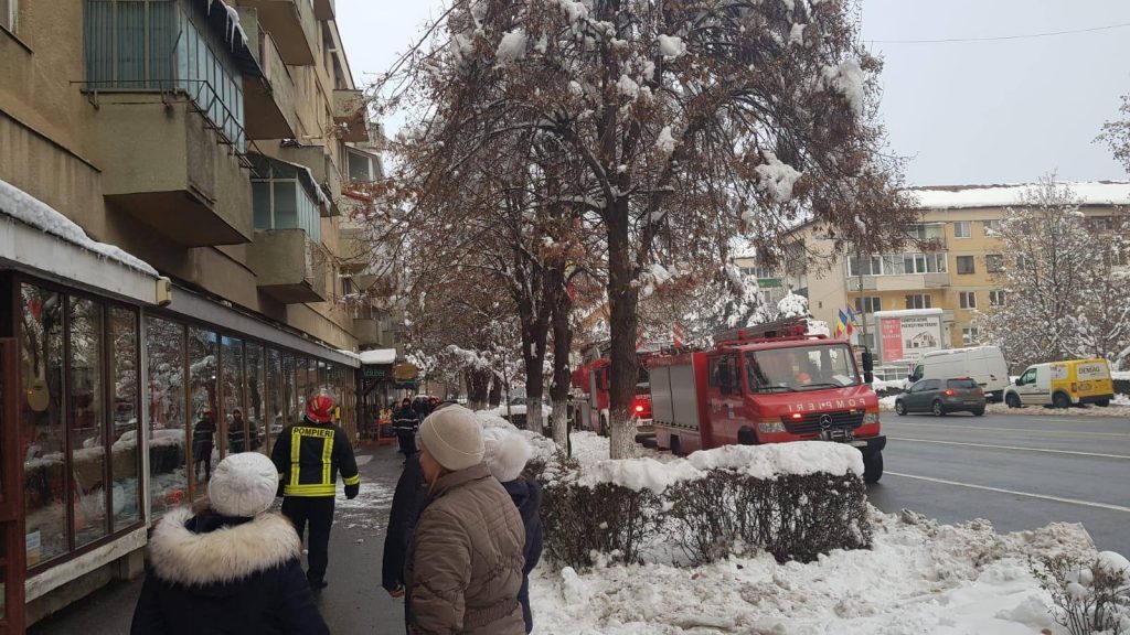 Pericol cadere zapada, TURTURI de pe un bloc in municipiul Zalau, Bdul. Mihai Viteazu, a intervenit Detasamentul Zalau.