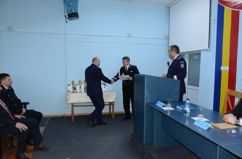 La ședința festivă desfășurată la sediul inspectoratului, au participat şi reprezentanţi ai autoritoţilor administraţiei publice locale, dar şi ai celorlalte arme din M.A.I., la nivel judeţean.