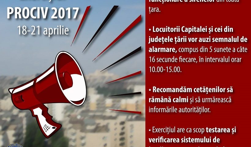 Joi, 20.04.2017, la ora 10:15, au fost acționate sirenele de alarmare la nivelul judeţului Sălaj,