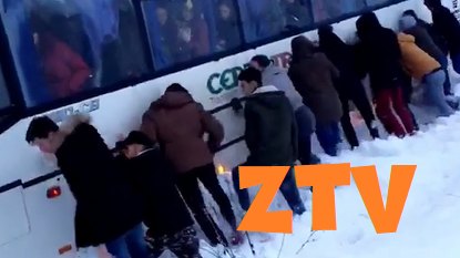 redactie imagini cu autobuzul care circula pe ruta Zalau – Crasna si care a ramas blocat in zapada. Cativa calatori au coborat ca sa impinga autobuzul, insa nu au avut nici o sansa, asa ca a trebuit sa astepte un utilaj care sa intervina.