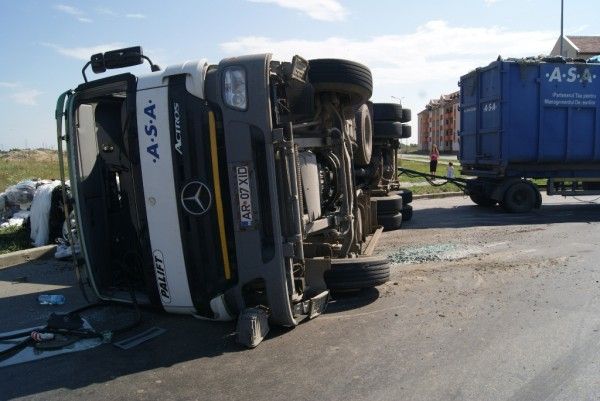 autocamion s-a rasturnat dupa ce soferul nu a adaptat viteza, a facut balans si a ajuns in afara partii carosabile. Accidentul a avut loc sambata in localitatea Mirsid, judetul Salaj.