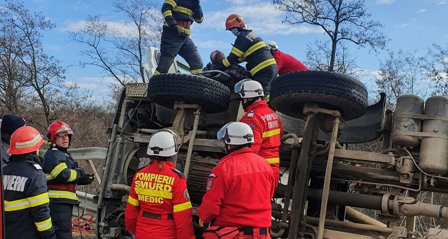 In urma cu putin timp pompierii zalauani au fost solicitati sa intervina la un eveniment rutier care a avut loc in localitatea Mirsid, pe DN 1 H.In eveniment a fost implicat un autocamion rasturnat, iar o persoana a ramas incarcerata. Un bărbat, de aprox 55 ani a fost extras şi este preluat de echipajul TIM.