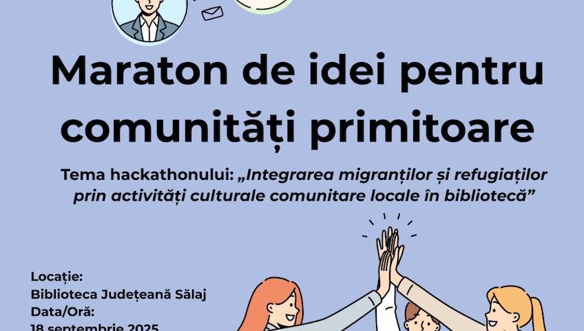 Biblioteca Județeană „Ioniță Scipione Bădescu” Sălaj, în parteneriat cu Consiliului Județean Sălaj, Inspectoratul de Poliție Județean Sălaj și Asociația Comunitățile Viitorului, vă invită joi, 18 septembrie 2025, între orele 9,00 și 15,00, la un eveniment unic: Maratonul de idei pentru comunități primitoare. Tema centrală? „Integrarea migranților și refugiaților