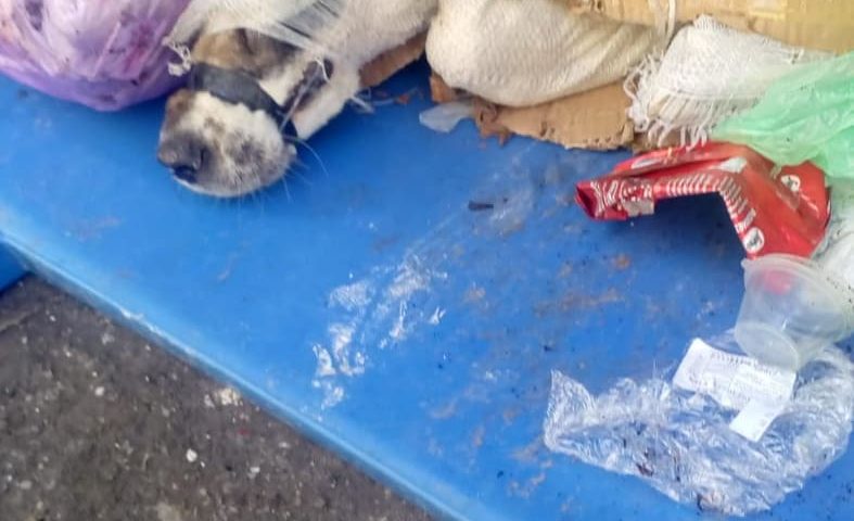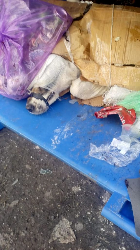 Caine a fost gasit legat, bagat in sac si intr-o cutie de carton, aruncat in pubela asa era bietul animal aruncat printre deseuri. S-a reusit eliberarea animalului, care a fost scos, oamenii i-au dat mincare si apa a relatat ISU Salaj.