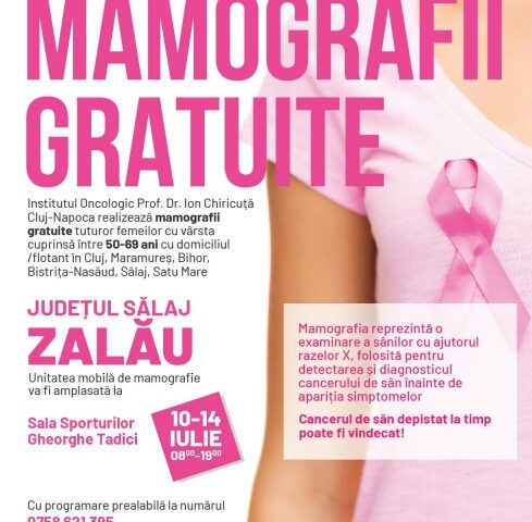 În perioada 10-14.07.2023, în Municipiul Zalău, Județul Sălaj, Institutul Oncologic „Prof. Dr. Ion Chiricuţă” Cluj-Napoca, cu sprijinul autorităților locale, va derula o campanie de testare mamografică pentru toate femeile cu vârsta cuprinsă între 50 și 69 ani care au domiciliul în județul Sălaj sau femei cu domiciliul în regiunea Nord Vest. Invităm astfel toate femeile care îndeplinesc condițiile de eligibilitate să se programeze la testarea mamografică.