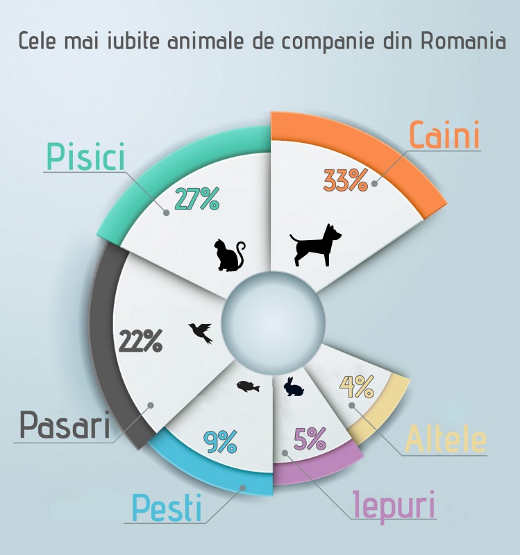 Topul celor mai populare animale de companie in randul romanilor este completat de pasari  – respectiv perusi, papagali – aproximativ 22% dintre romani ii prefera, pesti (9%) si iepuri (5%).