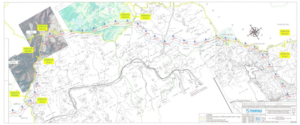 Președintele Consiliului Județean Sălaj, Dinu Iancu-Sălăjanu, a semnat certificatul de urbanism pentru obiectivul de investiții „Conducta de transport gaze naturale Huedin-Lugașu, inclusiv alimentare cu energie electrică, protecție catodică și fibră optică”. În lungime totală de aproape 70 kilometri, conducta va traversa teritoriul județelor Cluj, Sălaj și Bihor, și va face legătura între două capete de magistrală de gaz, din zona Huedin (județul Cluj), până în zona Lugașu de Jos (județul Bihor). Lungimea în plan a traseului conductei este, pe teritoriul Sălajului, de aproximativ 4,4 km, lungimea reală urmând să fie definitivată după efectuarea măsurătorilor topografice. Ulterior stabilirii traseului, vor fi identificate categoriile terenurilor traversate, suprafețele afectate din fiecare unitatea administrativ-teritorială, precum și deținătorii respectivelor parcele.