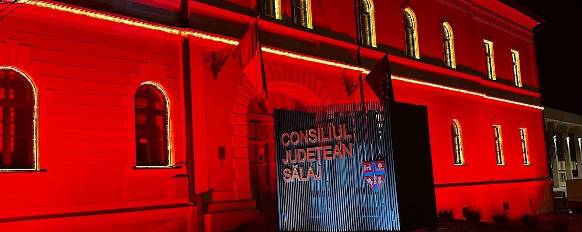 Clădirea Consiliului Județean Sălaj iluminată în roșu