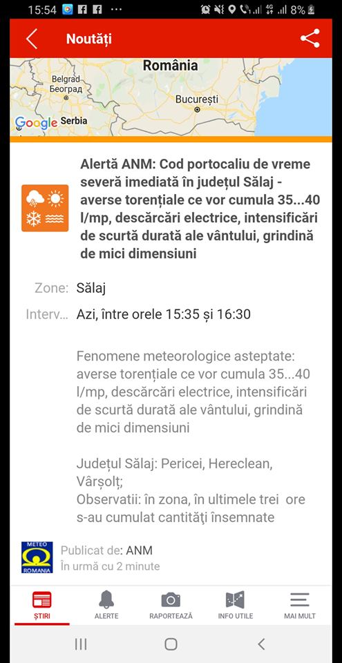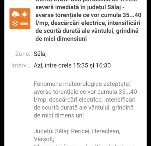 Cod portocaliu de vreme severa in judetul Salaj,zonele vizate PERICEI , HERECLEAN, VARSOLT