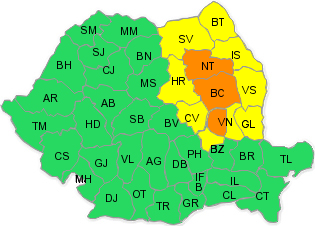 În judeţele Neamţ, Bacãu şi în zona de munte a judeţului Vrancea, se vor cumula cantitãţi de apã ce vor depãşi izolat 50 l/mp.