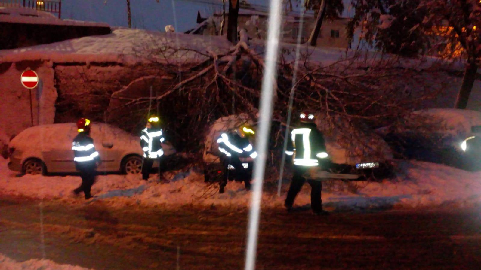 Copac rupt, cazut peste 3 autoturisme, in municipiul Zalau, str. Dumbrava. Intervine Det.