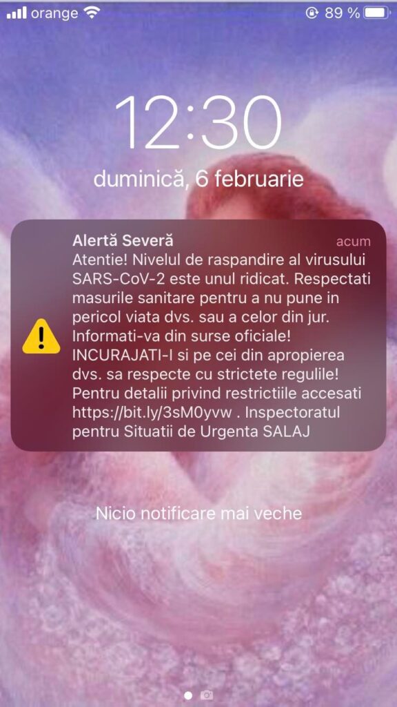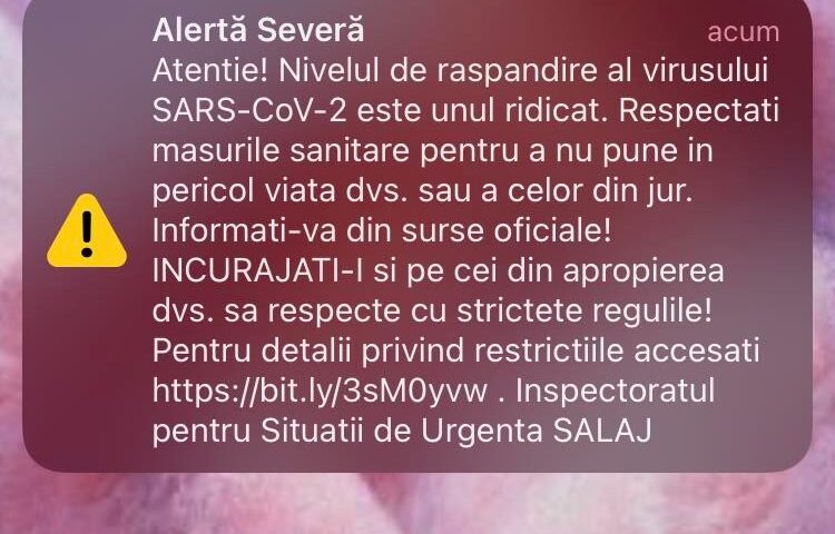 Duminica in jurul orei 12:0 salajenii au primit alerta din partea Inspectoratului de Situatii de Urgenta Salaj pentru prevenirea raspandirii Covid-19.