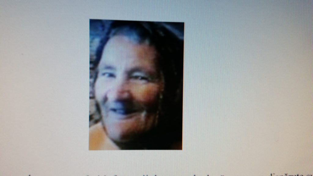 Semnalmente: înălţime – 1.50 m, ochi căprui, păr cărunt, tuns scurt, ten deschis, constituţie corpolentă, iar la piciorul drept prezintă o cicatrice. La data dispariţiei era îmbrăcată întrun capot de culoare bleumarin până la genunchi,